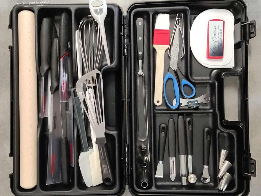 En tant que chef, étudiant en cuisine ou gourmand passionné, découvrez notre collection de mallettes de cuisine, véritable trésor d'ingéniosité et de finesse. Profitez d'un équipement de choix qui saura répondre à chacune de vos exigences culinaires. Les écoles de cuisine de tout l'hexagone nous font confiance, pourquoi pas vous ?